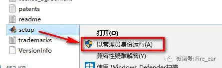 3.选中setup,鼠标右键点击“以管理员身份运行”