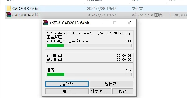 2.等待压缩包解压完成。