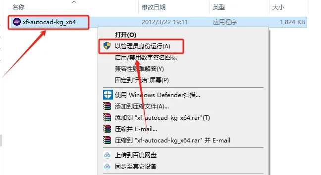 19.鼠标右击【xf-autocad-kg_x64】注册机,选择【以管理员身份运行】。