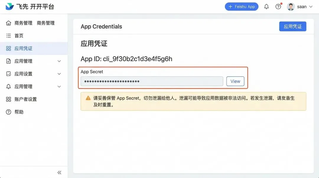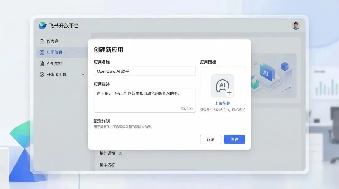 输入你创建的应用名称(如 “OpenClaw AI 助手”)