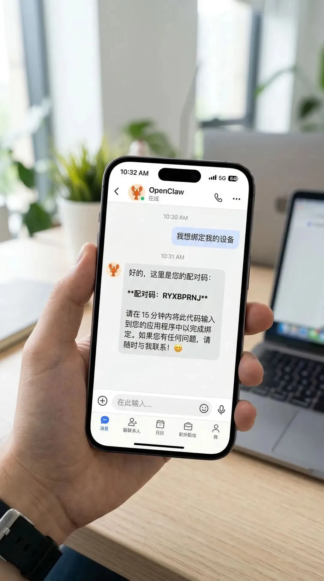 配对码有效期较短,如果过期,重新向机器人发送消息获取新的配对码