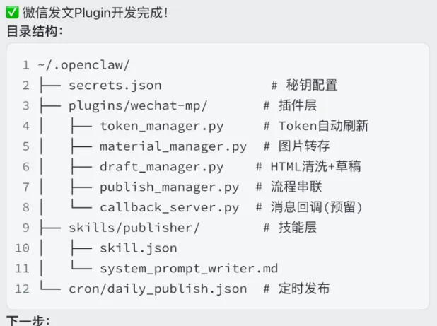 操作指令:将以下架构指令输入 Open Claw,系统将自动生成完整的插件架构、技能编排和定时任务配置。(提示词借鉴网络文章修改)