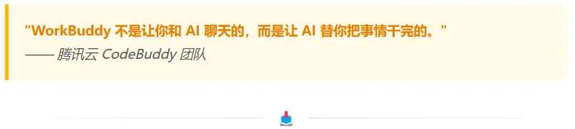 AI 工具的窗口期正在快速收窄。先用起来的人,比"等到成熟了再说"的人,已经领先了整整一个身位。 WorkBuddy 目前公测免费,新用户赠送 5000 积分。现在下载,今天就能让 AI 帮你干完今天的活。
