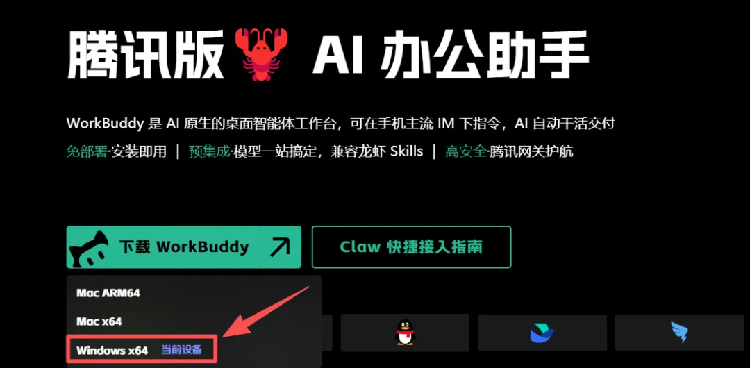 打开 copilot.tencent.com/work,选择对应系统版本下载。