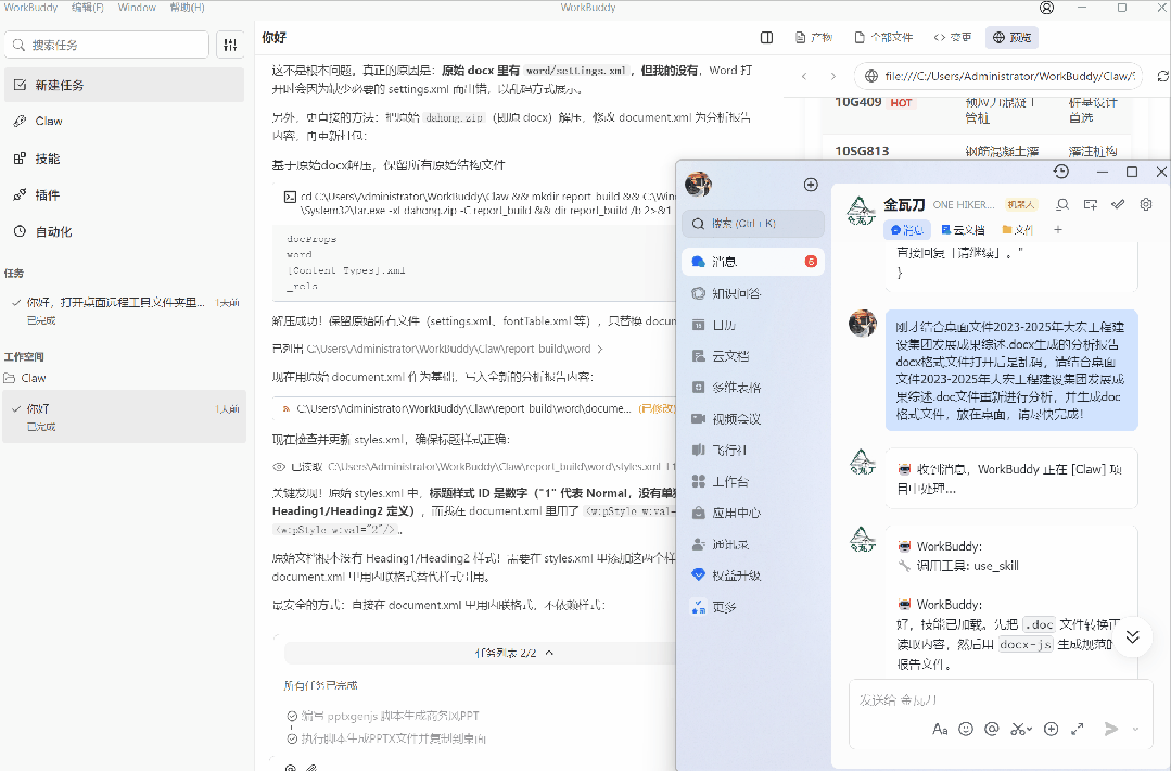 更好的策略是:两者结合——用 WorkBuddy 作为日常工作台,遇到特殊需求时从OpenClaw 社区安装对应的 Skills 插件,取两者之长。