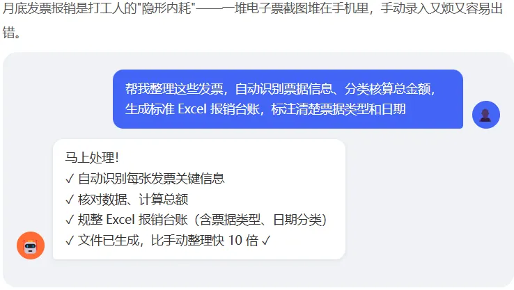 把最繁琐的琐事丢给 AI,彻底摆脱报销焦虑,时间还给自己。