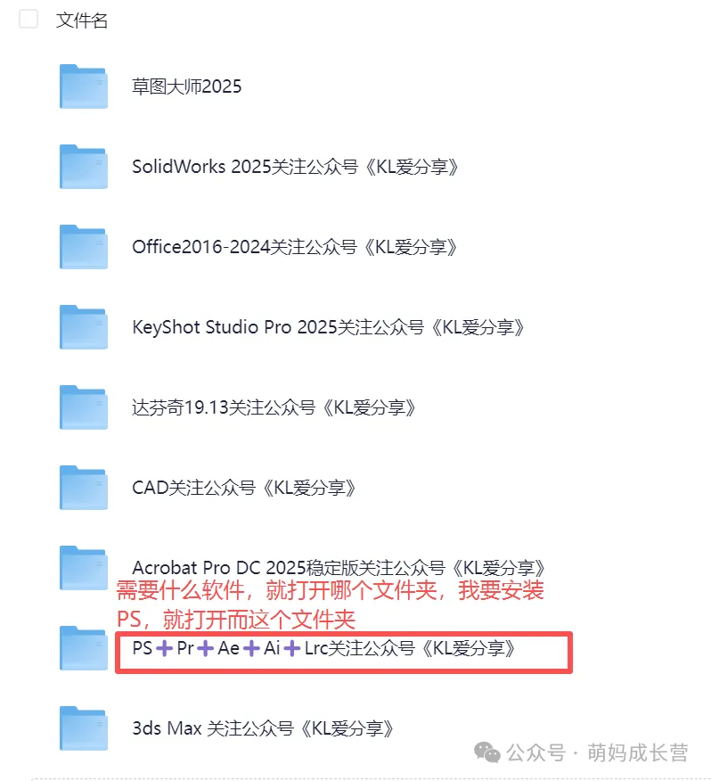 想要获取 PS、Pr、Ae、Ai、Office 等全套设计 / 办公软件资源?关注公众号 「萌妈成长营」,就能拿到网盘链接,后续有软件更新也会第一时间同步~