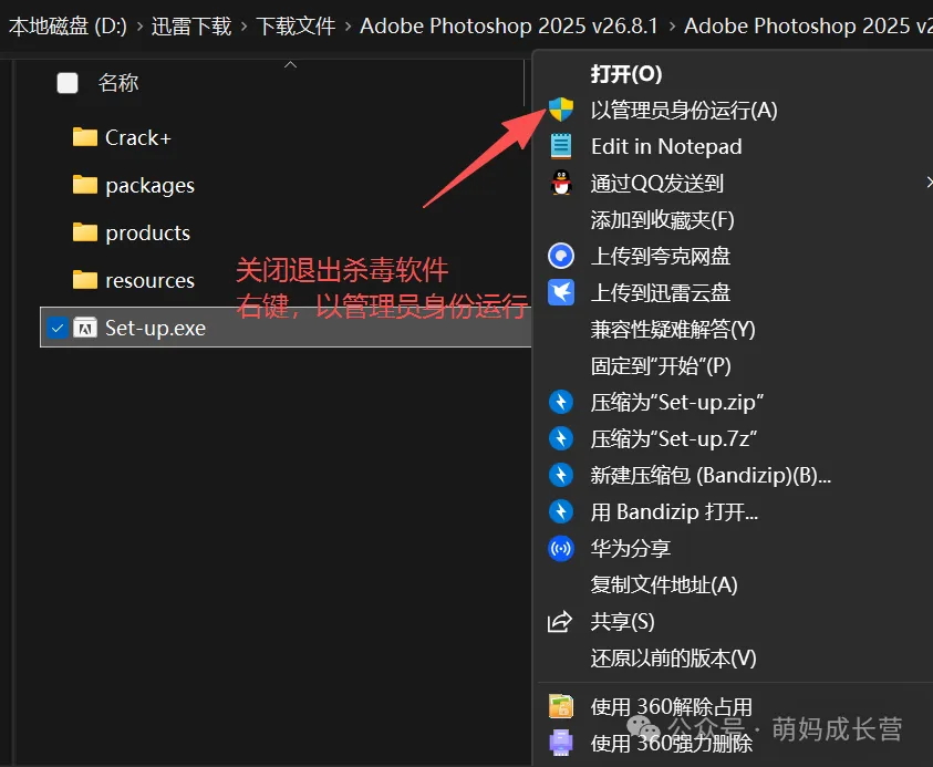 - 右键点击「Set-up.exe」→ 选择「以管理员身份运行」