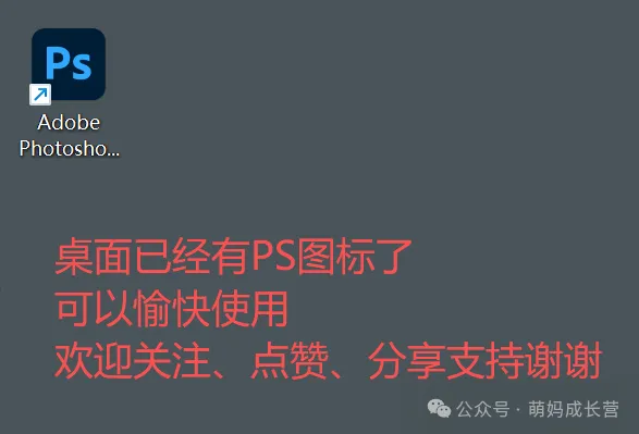 回到桌面,就能看到 PS 的图标,下次双击就能直接打开,不用再找文件夹啦~