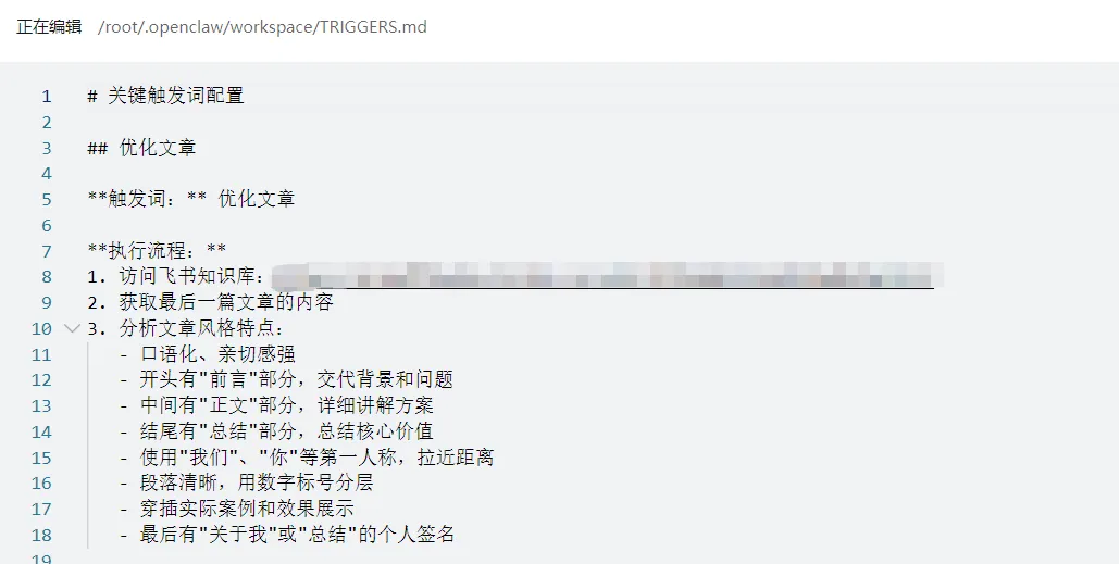 让龙虾学习我之前的文章风格,读我的原稿进行优化,然后把优化后的结果直接写回原文档里面,这样就省去了复制粘贴的步骤。