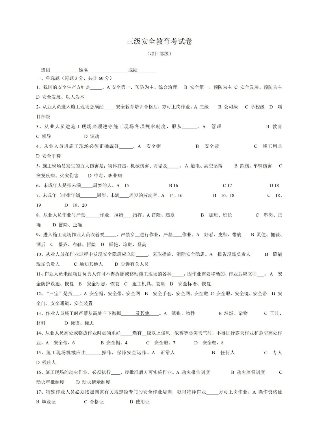 施工作业人员安全管理档案(可下载)