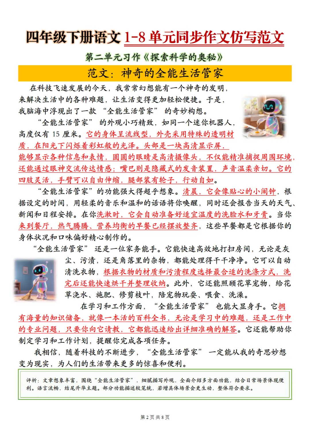 四年级(下)语文 1-8单元同步作文仿写范文8页