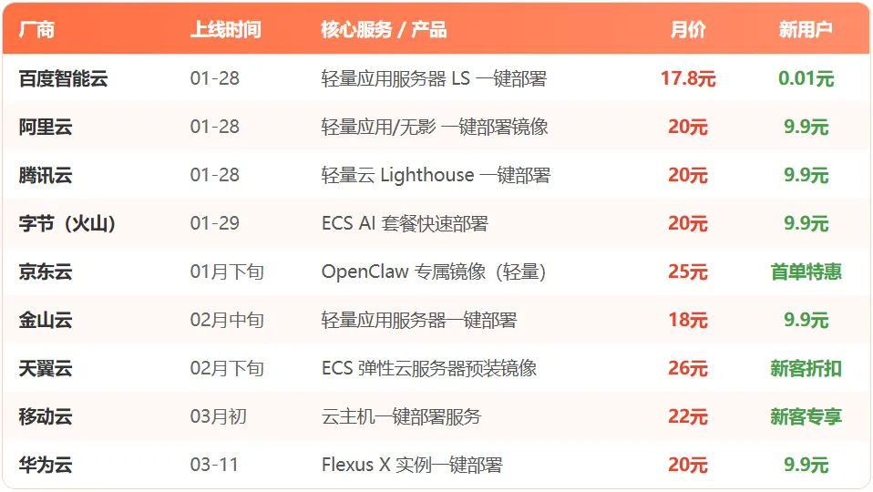通过各厂商 OpenClaw 快速开通的界面进入,下单购买,即可直接通过模板部署好一个装载好龙虾的服务器。