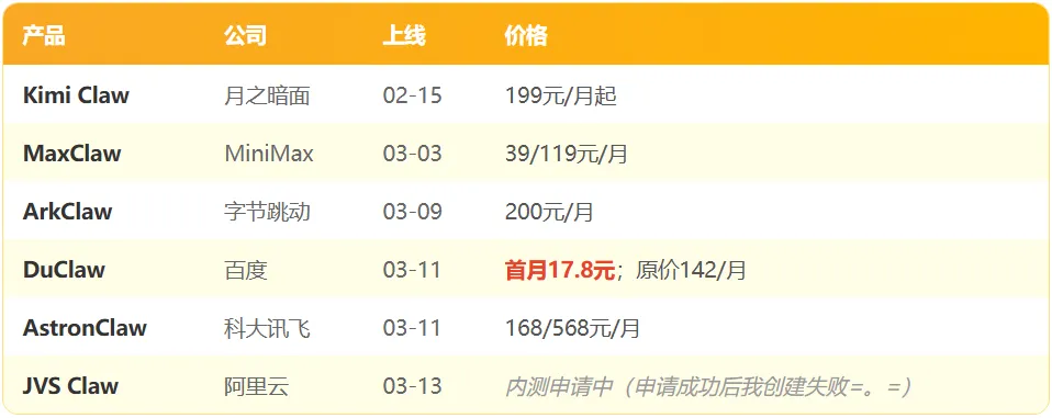 * 数据来自豆包整理,但上线时间和价格人工勘误