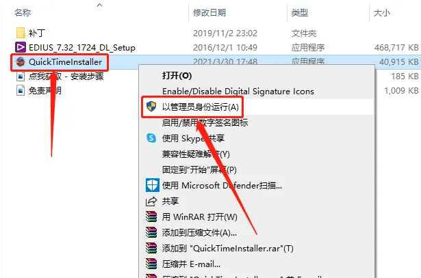 4.鼠标右击【QuickTimeInstaller】,选择【以管理员身份运行】。