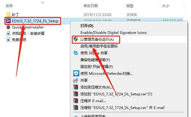 17..返回到解压的【EDIUS 7.3】文件夹中,然后鼠标右击【EDIUS_7.32_1724_DL_Setup】安装程序,选择【以管理员身份运行】。