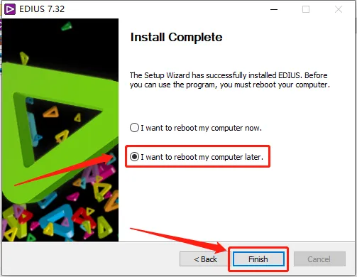 28.选择【I want to reboot···】,然后点击【Finish】。