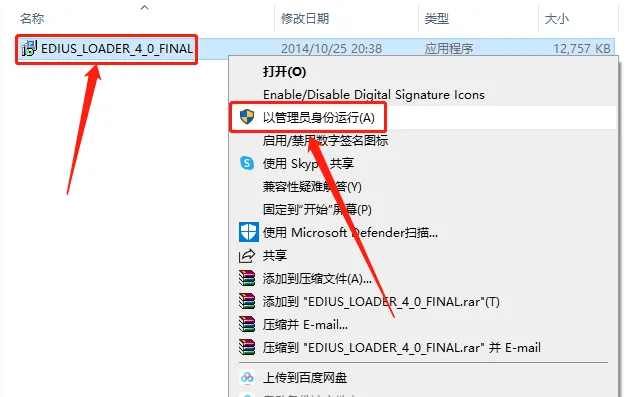 30.鼠标右击【EDIUS_LOADER_4_0_FINAL】,选择【以管理员身份运行】。