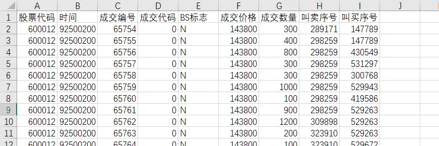 - 叫买序号:被撮合成交的买方交易所委托号,可以在逐笔委托.csv中查询;
