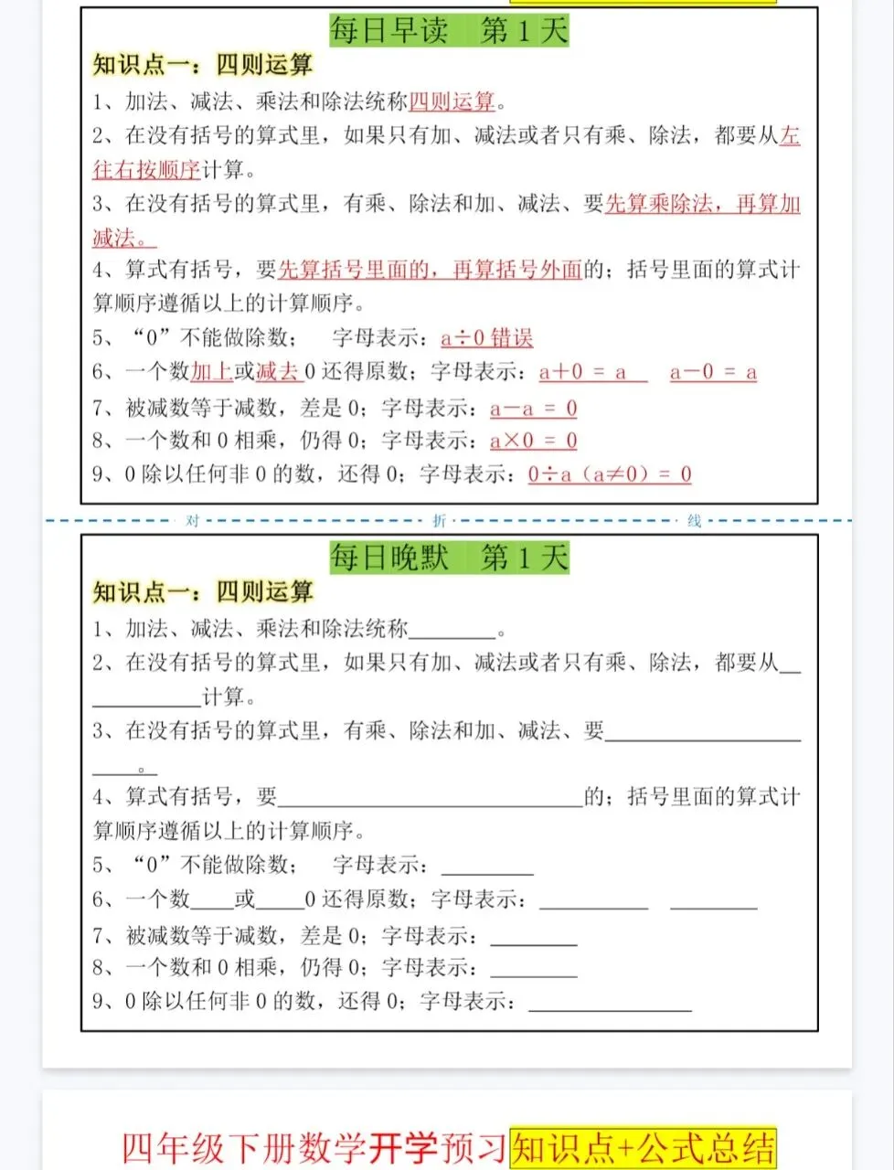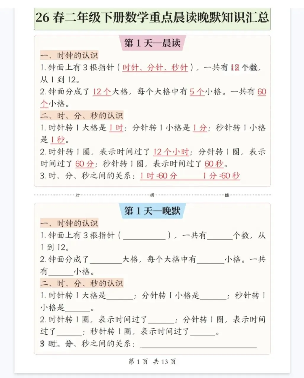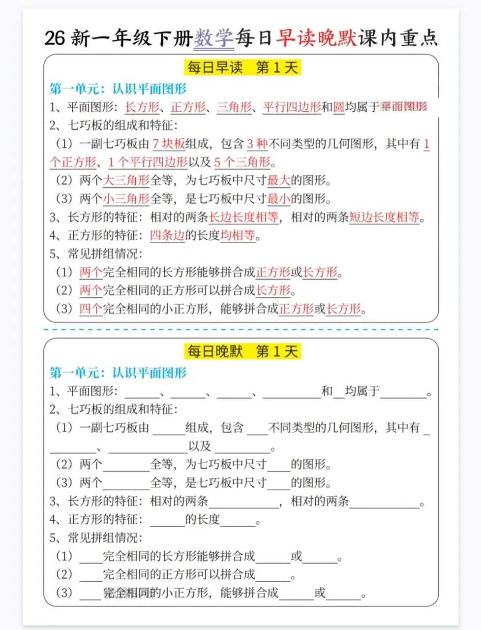 本文内容分享【小学1-6年级🌞 数学晨读晚默 🌙】