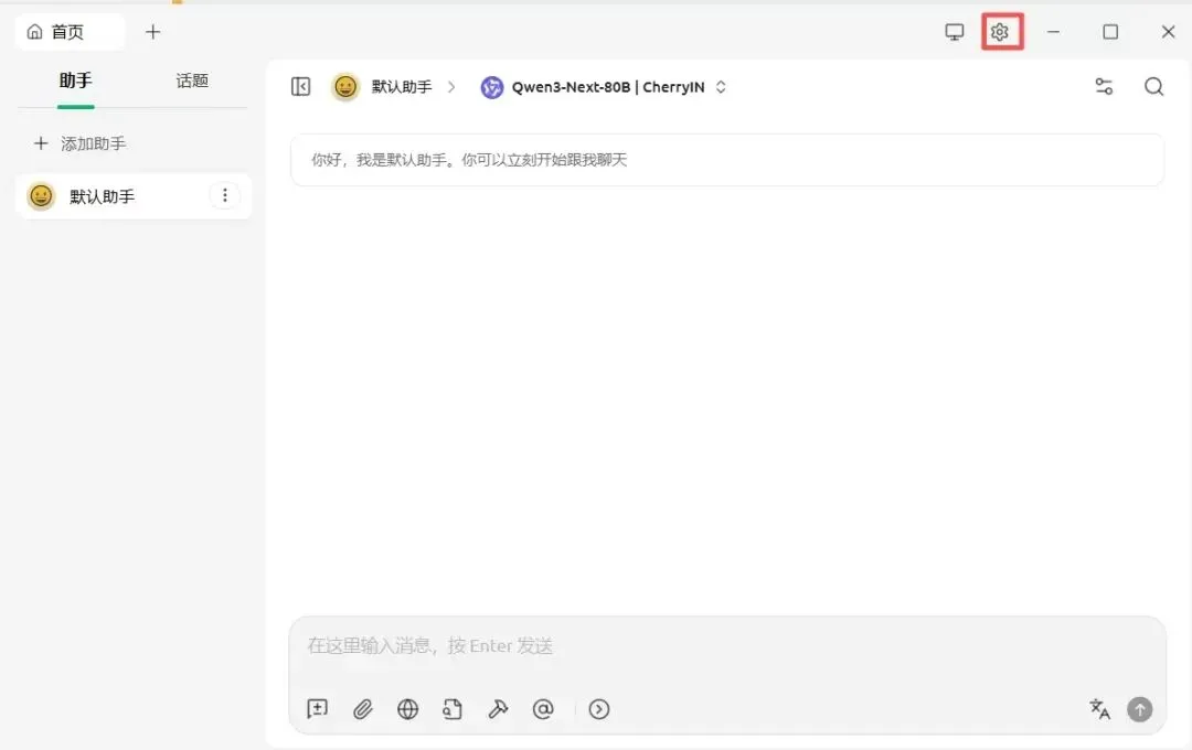 1.打开 Cherry Studio,找到界面上的 “设置” 图标,点击进入;