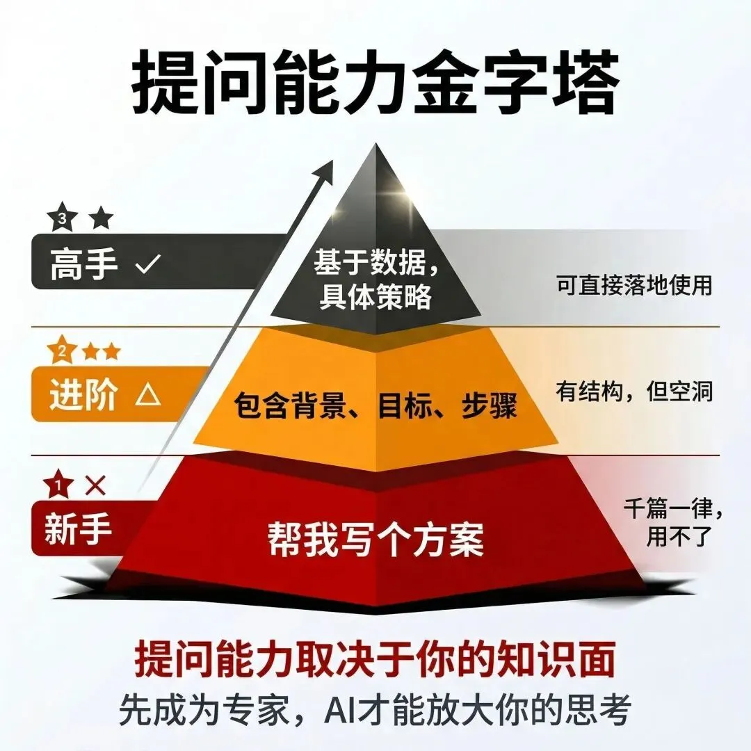 Level 1(新手): “帮我写个方案”→ 出来的东西千篇一律,用不了