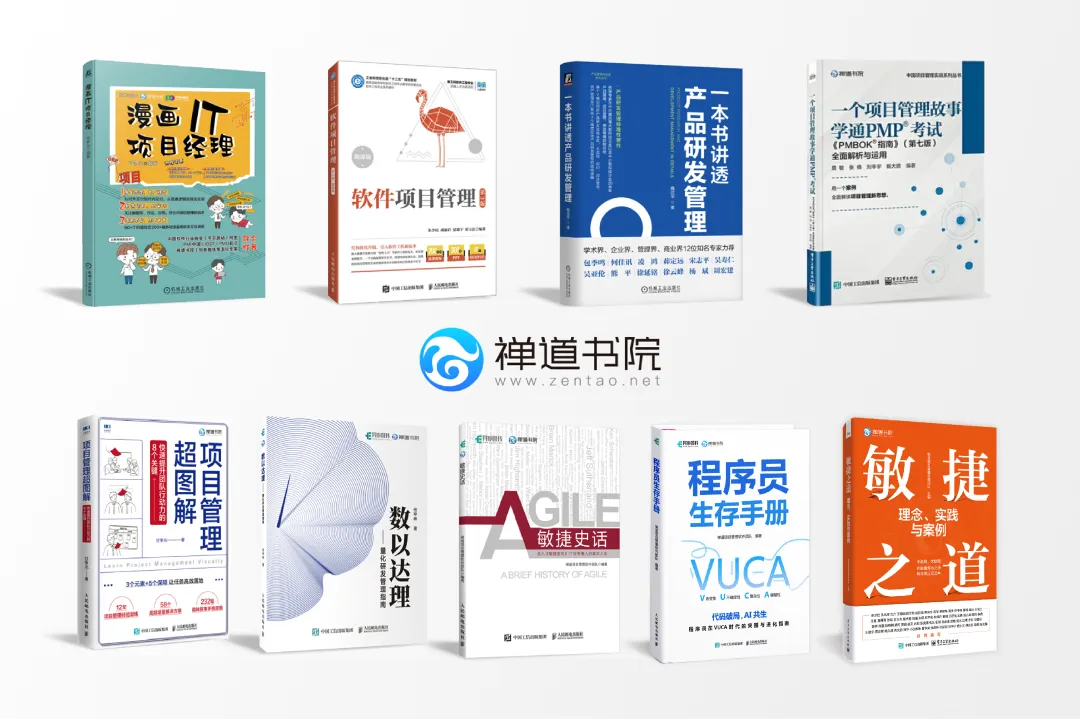 针对这一问题,禅道团队在2022年推出了“禅道书院”书籍品牌,目前已出版《程序员生存手册》《一本书讲透产品研发管理》《软件项目管理 第三版》《数以达理》《项目管理超图解》《一个项目管理故事学通PMP®考试》《敏捷史话》《漫画IT项目经理》《敏捷之道》等书籍,涵盖度量、管理实践、PMP理论、人才成长等多个维度。