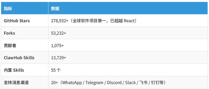 图:截至2026年3月OpenClaw数据