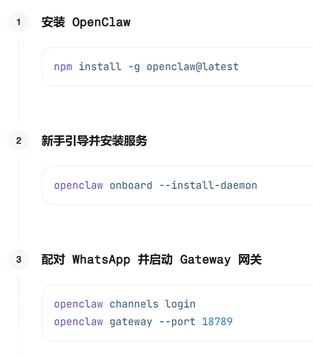 图:OpenClaw 快速安装步骤