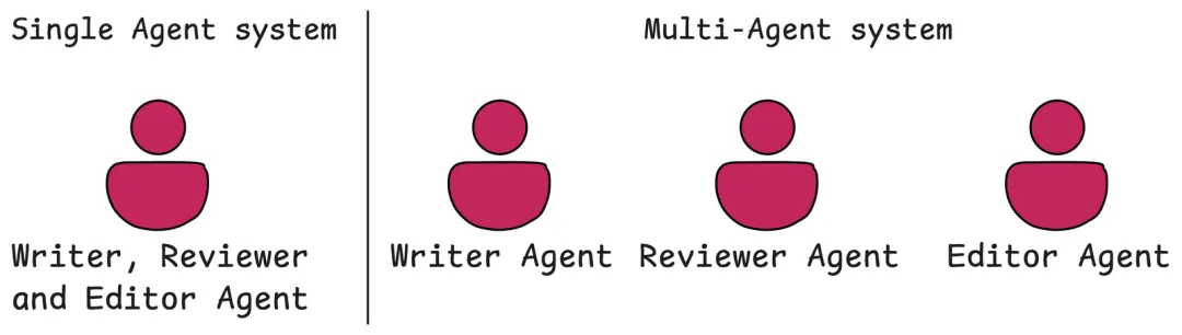 图:单智能体系统 VS 多智能体系统