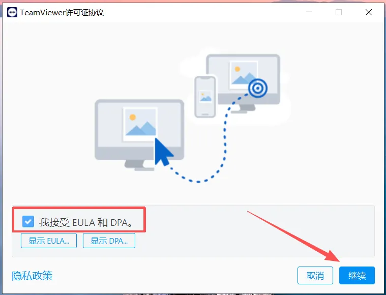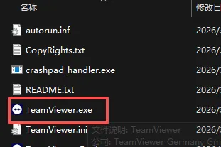 1、解压哥白提供的安装包,打开找到【TeamViewer.exe】,双击即可运行。
