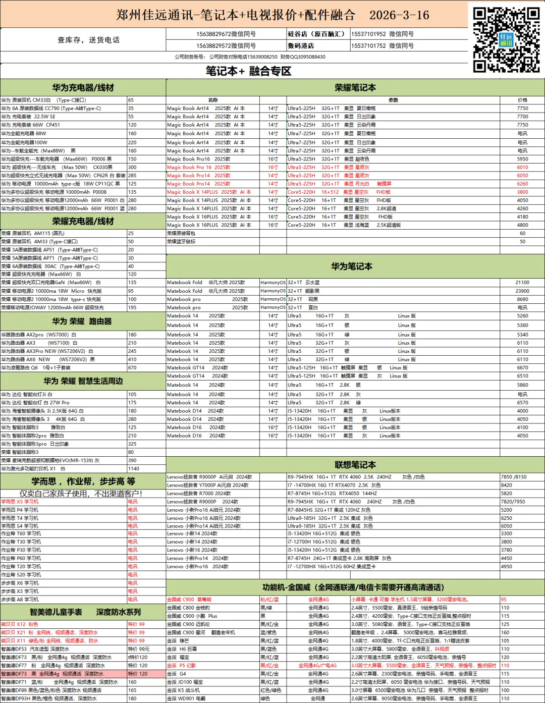 苹果17 256黑/白/蓝/紫 5499 需到店自提 苹果17 Pro 256 深蓝/橙 8780苹果17 Pro Max 256 深蓝/橙 9680/9550苹果 IPad 25版 11寸 256 银/蓝 3120/3120苹果Series11 GPS 46 亮黑运动(vg4)2350vivo S50 12+512 黑/蓝 2617 需到店自提vivo Y500 Pro 12+512 浅绿/柔粉 1903需到店自提荣耀power2 12+256黑白橙2210需到店自提荣耀power2 12+512黑白橙2430需到店自提荣耀500pro 16+512蓝银粉3660荣耀VFlip2 12+1 t 白 5700荣耀magic8Air16+512黑白紫橙国4750需到店自提
