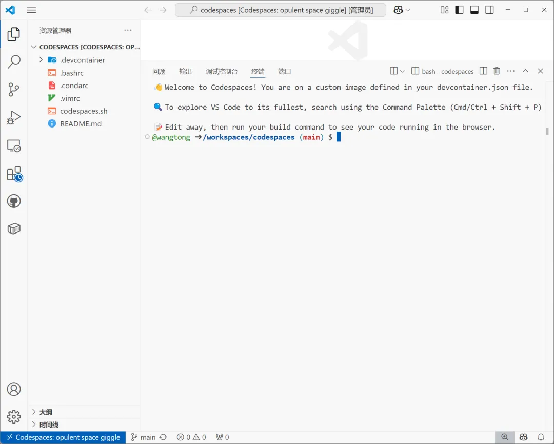 登录codespaces