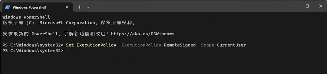 第一,首页打开powershell软件,这个是命令行安装的Set-ExecutionPolicy -ExecutionPolicy RemoteSigned -Scope CurrentUser