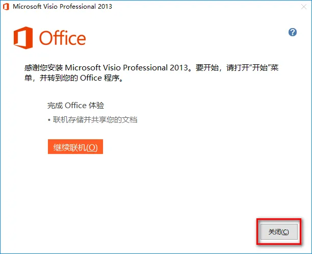 温馨提示:若打开没有激活工具,说明被电脑杀毒软件隔离了,关闭杀毒软件重新解压即可。 12.点击“激活 Visio 2010 ~ 2019 Pro” ![]() 13.激活成功,点击“确定” ![]() 14.在开始菜单找到Visio并打开 ![]() 15.点击账户,在产品信息中可以查看是否激活成功,激活成功如下图,显示为激活的产品 ![]() 16.安装结束 ![]() |