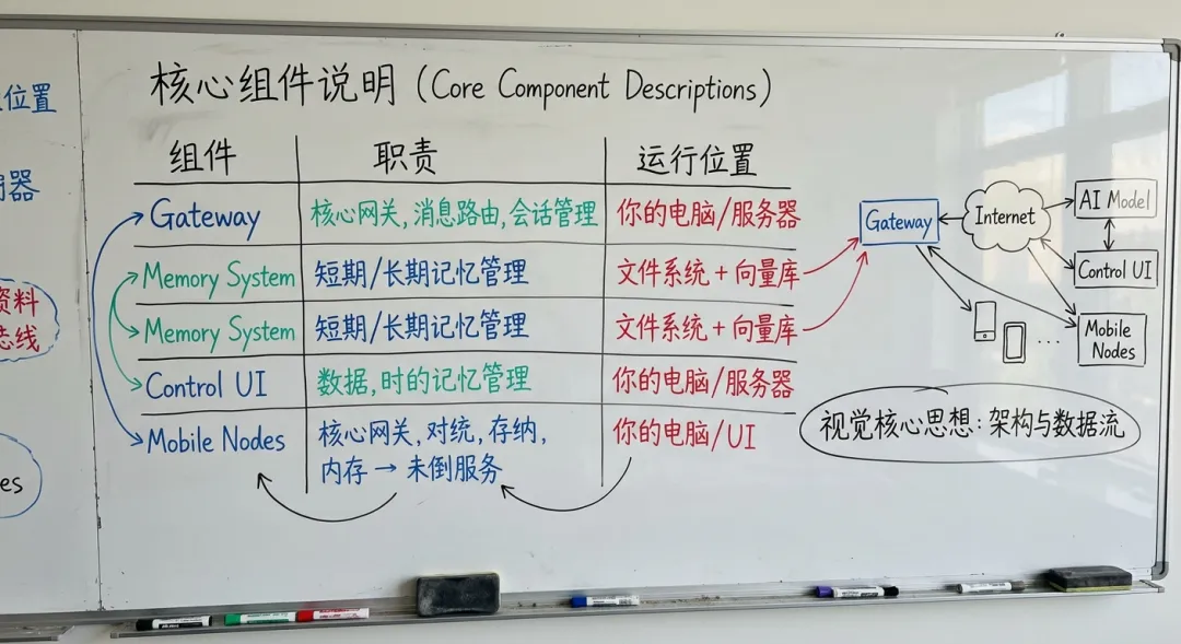 Gateway | 核心网关,消息路由,会话管理 | 你的电脑/服务器 |