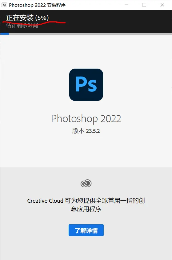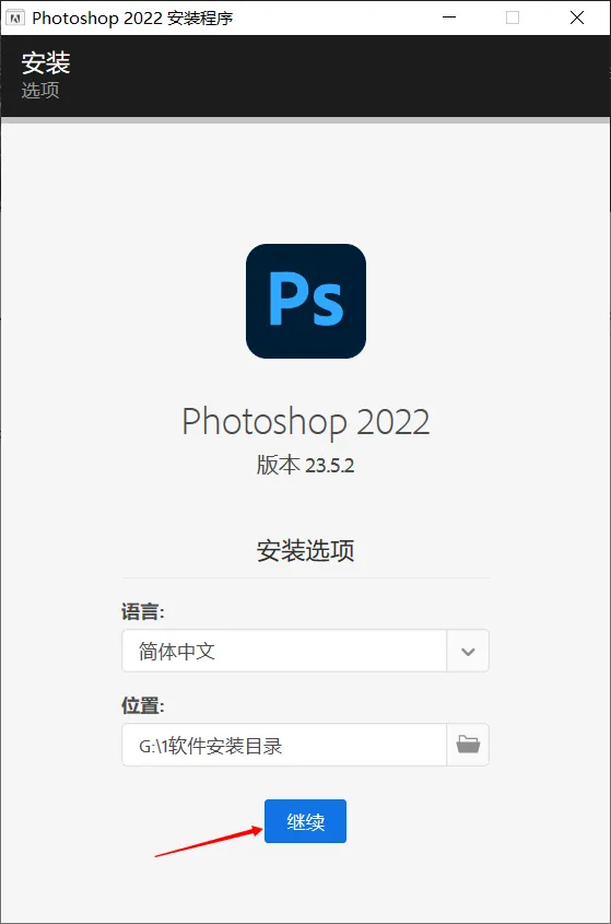 二、Adobe公司的大部分软件安装教程一模一样,这里以PS 2022为例。