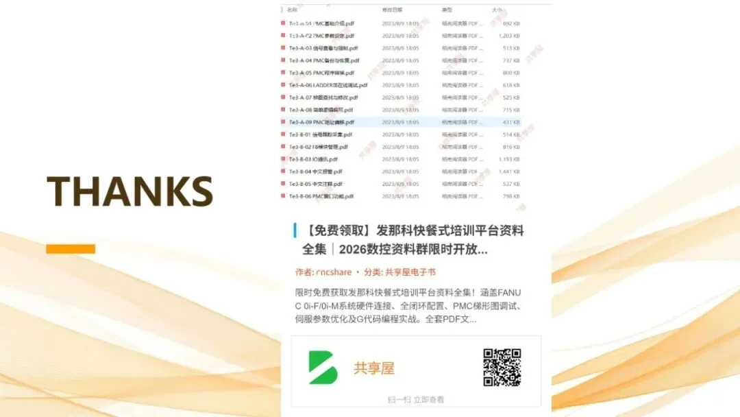 免费下载|发那科PMC备份与恢复技术详解|共享屋点击【阅读原文】下载本文档PDF文件,更多技术文档,请关注公众号文章更新只需加入我们的「2026数控资料交流群」,即可免费获取完整下载地址!进群参见如下文章介绍:数控资料下载群 2026|免费进群