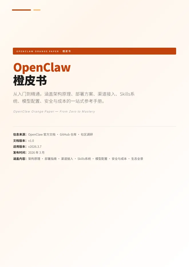 今天分享的是“OpenClaw橙皮书:从入门到精通”。