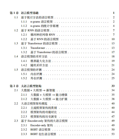 本书第一版包括传统语言模型、大语言模型架构演化、Prompt工程、参数高效微调、模型编辑、检索增强生成等六章内容。为增加本书的易读性,每章分别以一种动物为背景,对具体技术进行举例说明,故此本书以六种动物作为封面。当前版本所含内容均来源于作者团队对相关方向的探索与理解,如有谬误,恳请大家多提issue,多多赐教。后续,作者团队还将继续探索大模型推理加速、大模型智能体等方向。相关内容也将陆续补充到本书的后续版本中,期待封面上的动物越来越多。