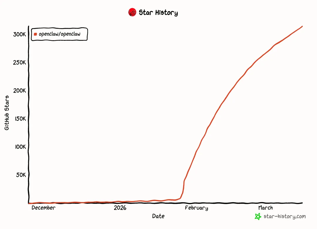 2026 年初,一个叫 OpenClaw 的开源项目在 GitHub 上以前所未有的速度狂飙——60 天 10 万 Stars,峰值 48 小时涨 3.4 万,到 3 月已经突破 31 万。速度是 Kubernetes 的 18 倍。