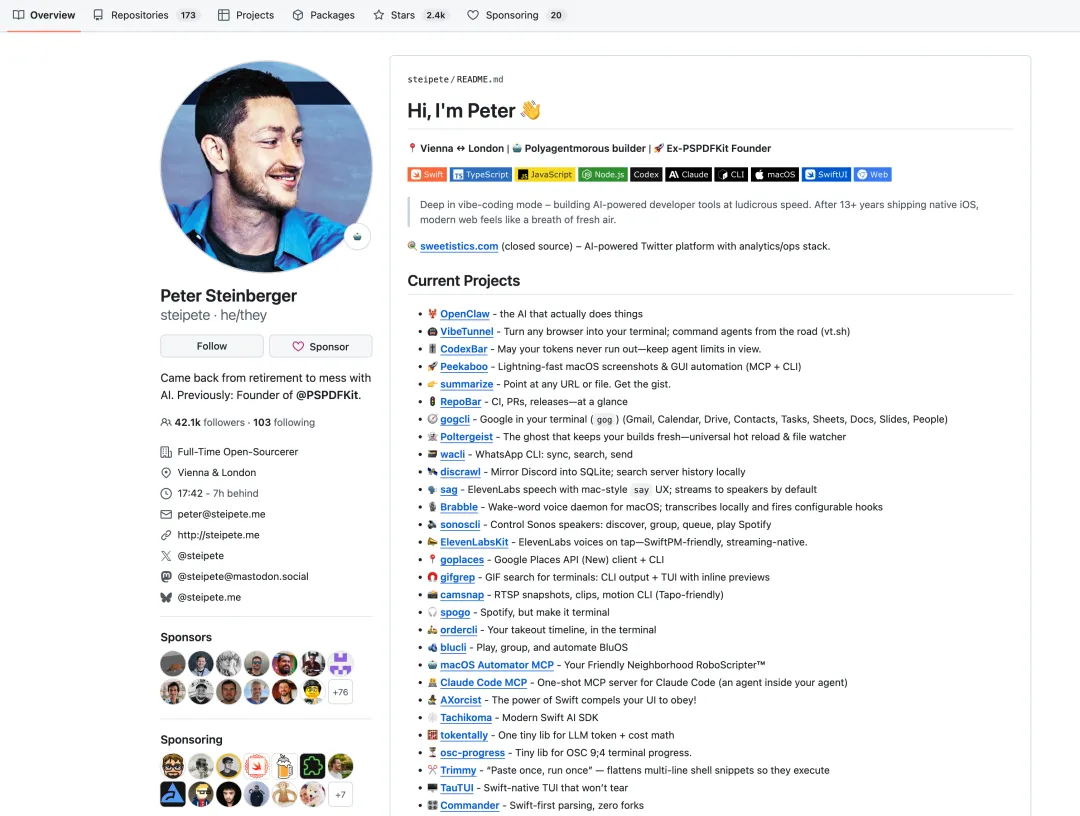 创造它的人叫 Peter Steinberger,奥地利人,39 岁。