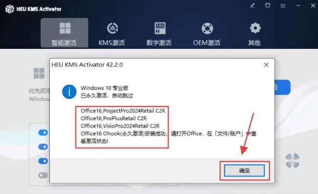 8、激活成功,点击【确定】。