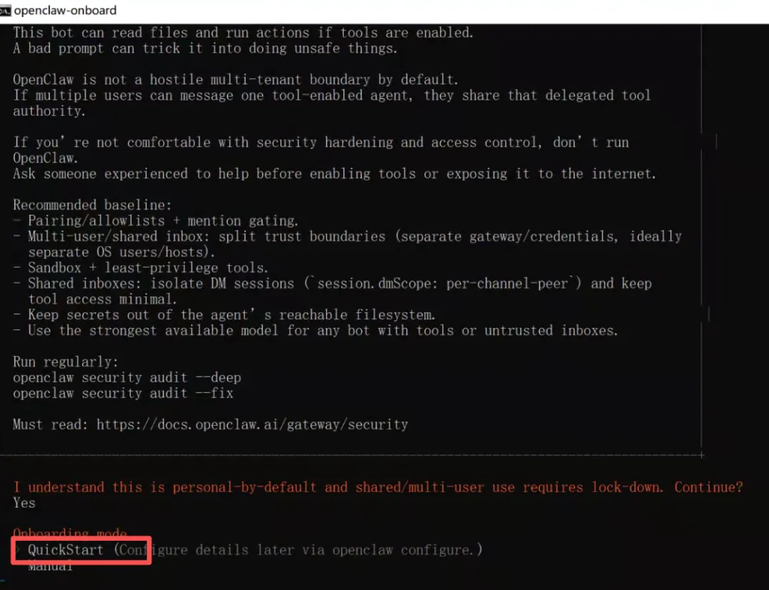 openclaw onboard选择QuickStart