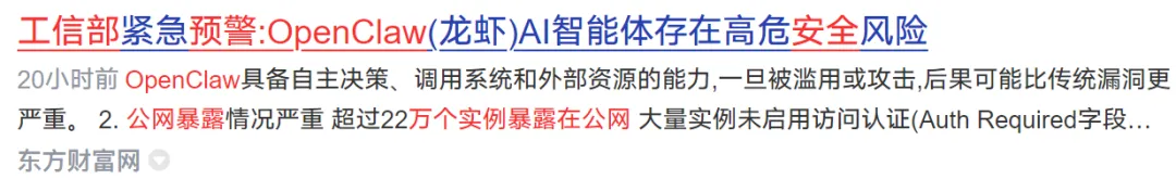工信部连发两道安全预警:全球超过4.2万个Openclaw实例暴露在公网,ClawJacked漏洞、远程命令执行漏洞、恶意技能注入、权限失控……四大高危风险集中引爆