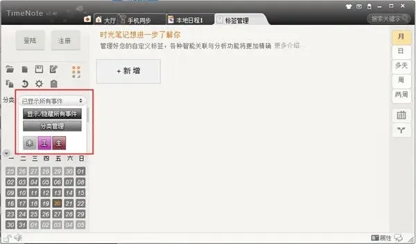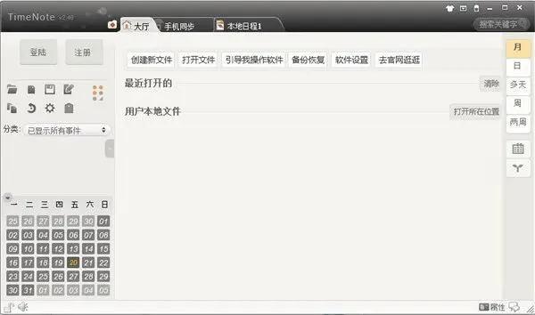 它支持多文件同时打开,不用来回切窗口;可以按事件分类创建,工作、生活、杂七杂八都能分开放;要是有些内容不想让别人看到,还能加密管理,隐私这块拿捏得挺稳。查看模式也给了好几种选择:年、月、日、周,想按什么节奏翻都行。