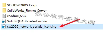 2.进入解压好的文件夹,打开【Crack】文件夹,双击【sw2026_network_serials_licensing.reg】运行注册表文件