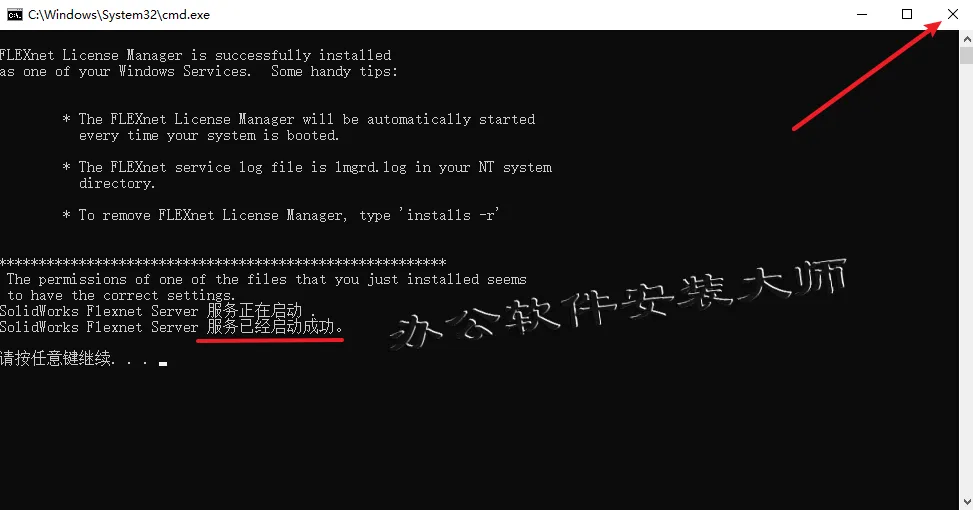 11.运行显示【服务已经启动成功】后点击右上角【X】关闭窗口。
