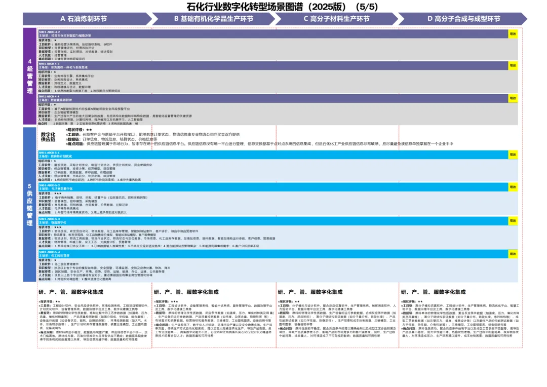 “数据驱动决策” 是核心转型方向。钢铁行业推进人力资源、设备、能源的数字化管控,但系统不兼容导致数据整合难;石化行业搭建经营指标实时跟踪系统,却受限于关键数据获取滞后;美妆日化行业通过 ERP、CRM 系统整合产销数据,但合规风险识别与合同管理效率低;制糖行业尝试利润预测式核算,却面临产业链数据分散、格式不一的问题。共性痛点为数据治理薄弱、跨部门协同效率低。