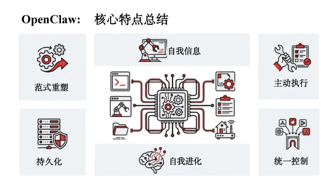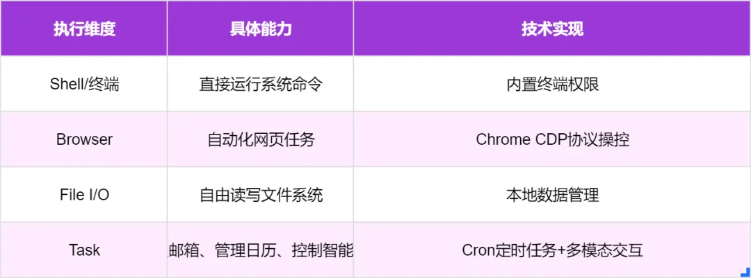 报告将OpenClaw的核心能力归结为四大支柱,每一根都在挑战传统AI工具的边界: